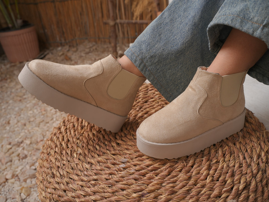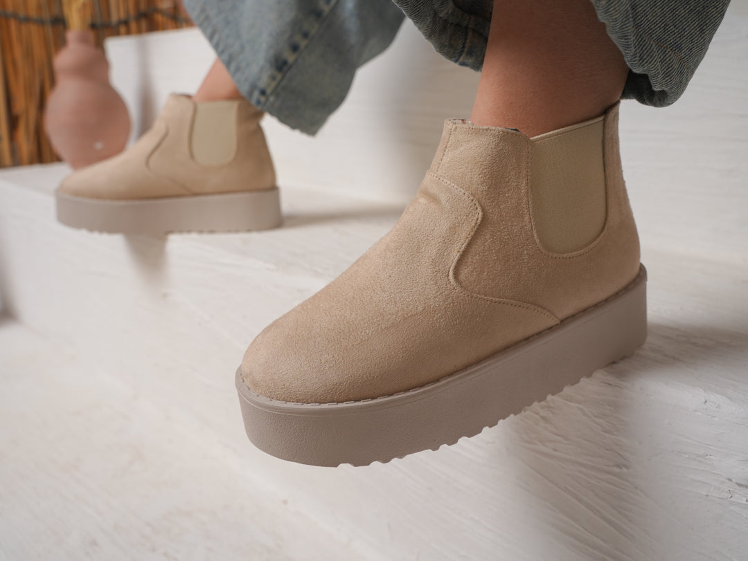 Break the rules in comfort. Rebel Platform Boots feature a sleek suede upper with elastic side panels for easy slip-on wear, and a bold chunky sole that adds height and attitude to every step. Designed for winter style that stands out.