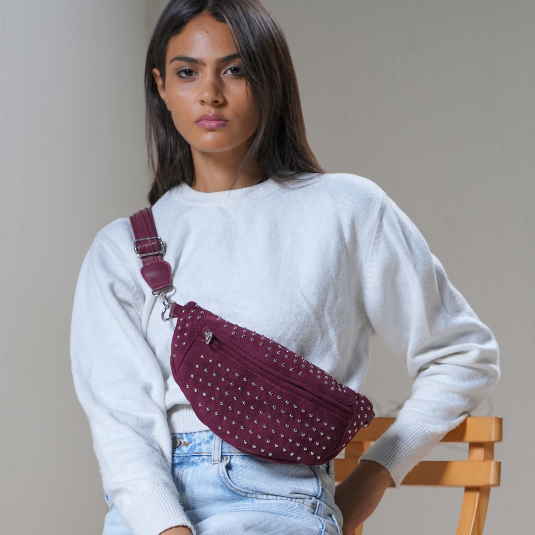A statement belt bag designed for hands-free confidence and style. Crafted from premium leather and finished with full-surface metallic studs, it brings a bold, modern edge to any outfit. The spacious main compartment keeps your essentials secure and easy to reach, while the adjustable strap lets you wear it around the waist or across the chest. Durable, stylish, and effortlessly cool — the perfect everyday piece with a strong attitude.